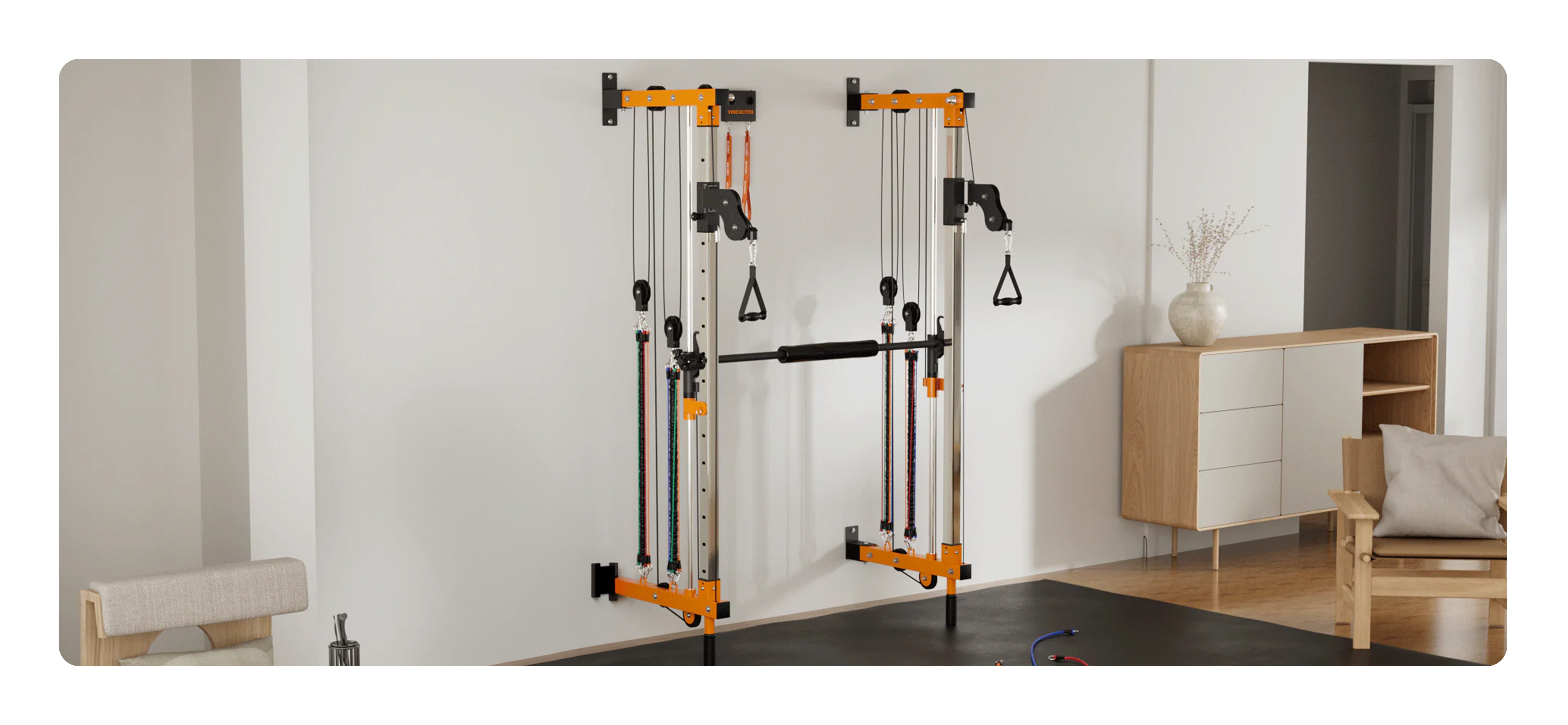 Combining the Rising folding wall mounted all in one machine, Power Rack, Cable Crossover Machine, and Pull-Up Bar into one compact unit is the Rising folding wall mounted all in one machine. It provides more than 100 total body exercises to fulfil a range of at-home fitness objectives.