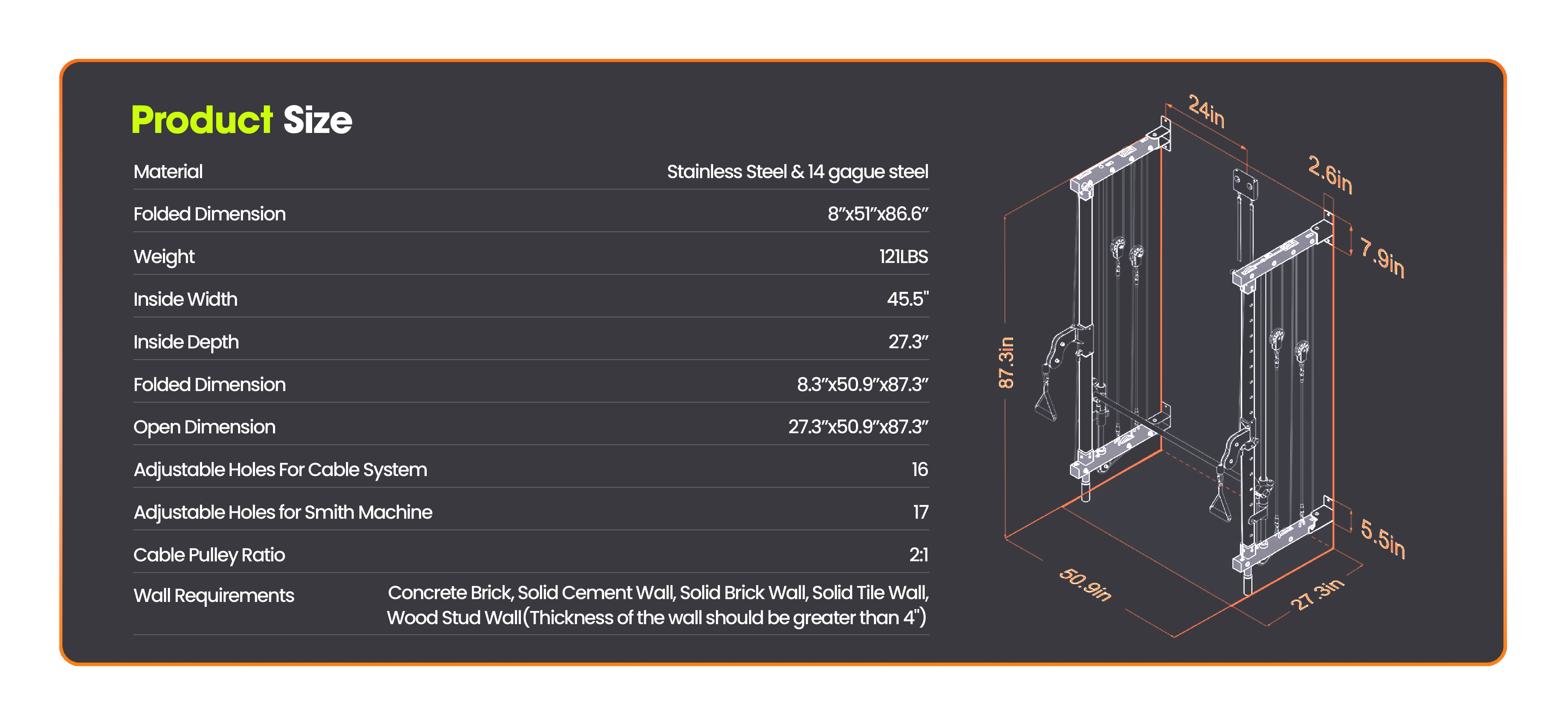 Work every muscle in your body. The Rising folding wall mounted all in one machine targets shoulders, back, arms, chest, and legs – all with just one machine. Ditch the crowded gym and bulky equipment chose Rising Yeti!